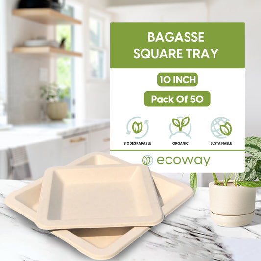 BAGASSE PLATE 10 INCH SQUARE-NATURAL